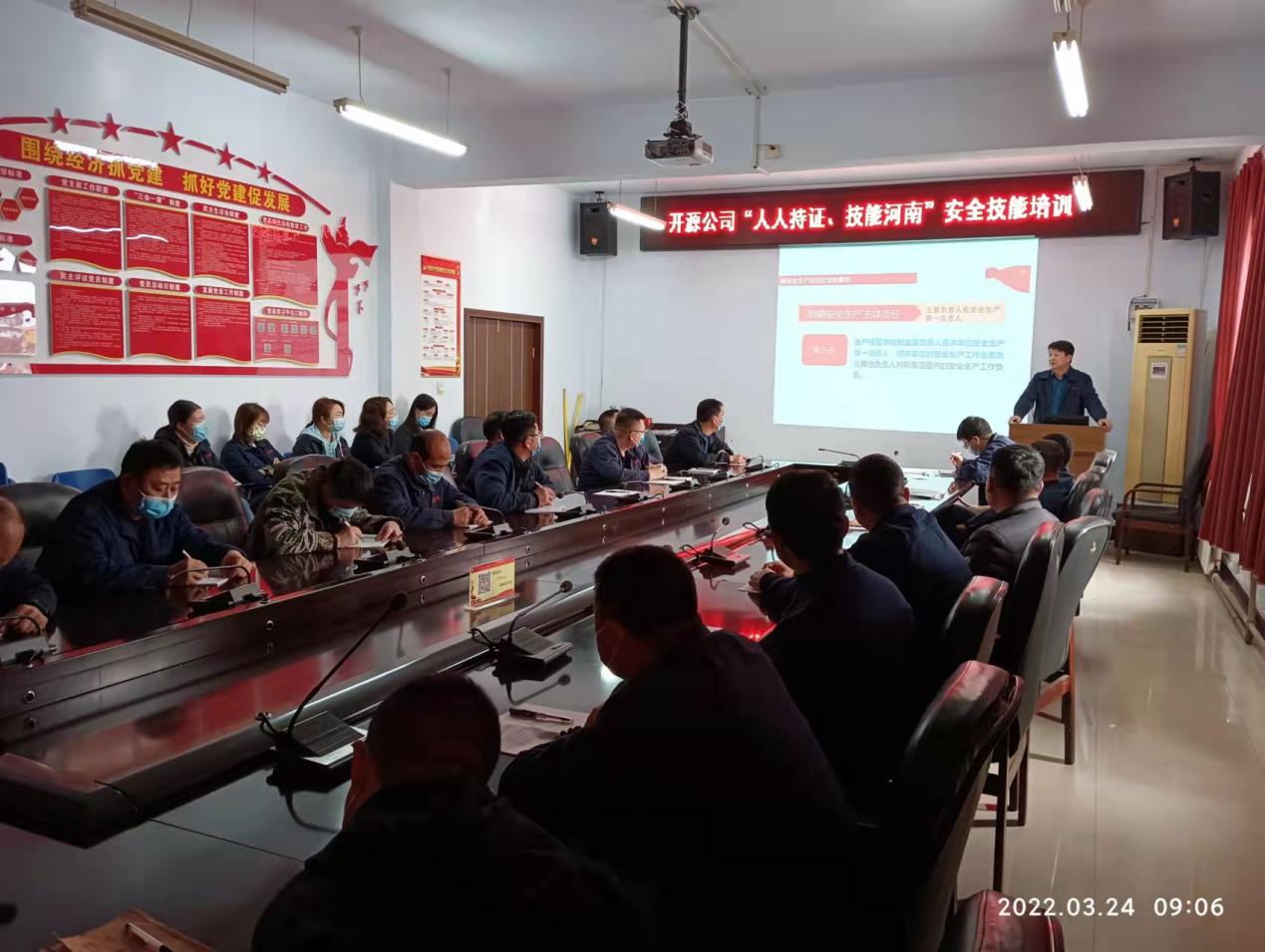 3月24日,開源公司對照靈應急﹝2022﹞14号文件《關于加快推進“人人持證、技能河南”》工作實施方案,組織各部門負責人、安全員工30餘人,進行安全技能培訓,公司副總經理杜文樂主持并對新修改《安全生産法》内容講解培訓。